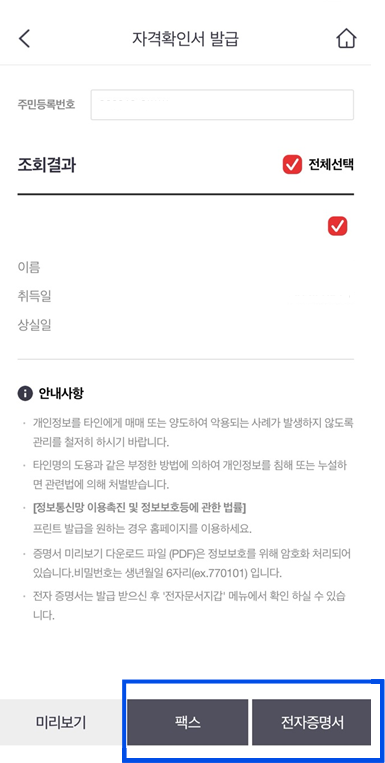스마트폰을 통해 간편하게 발급받는 방법입니다.