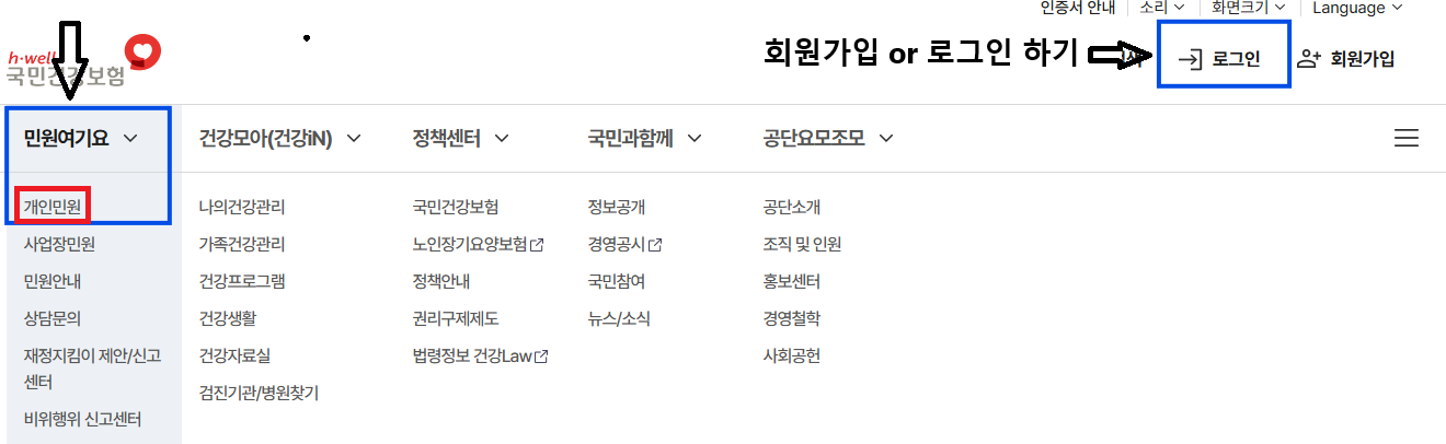 - 국민건강보험 홈페이지 접속: 브라우저에서 국민건강보험공단 홈페이지에 접속합니다.
