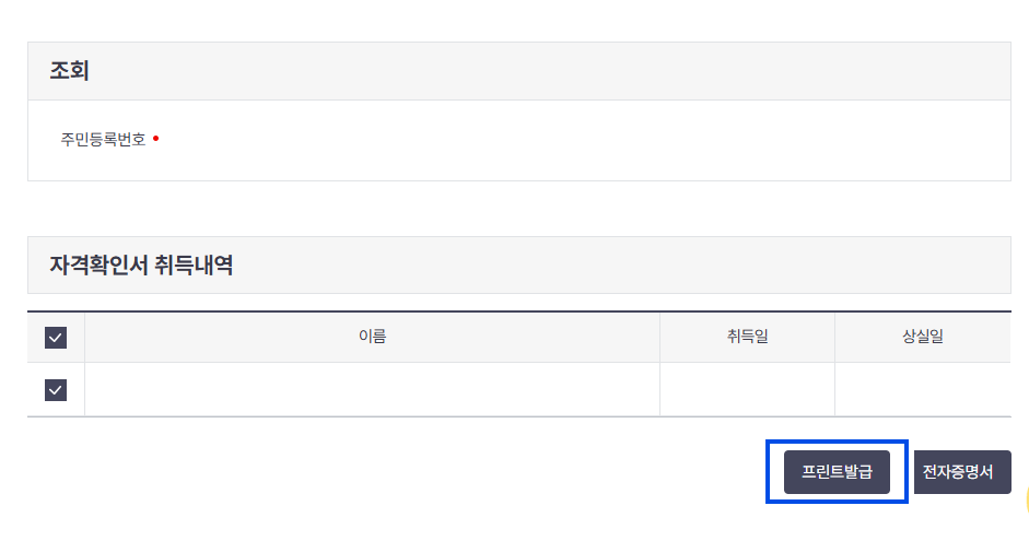 - 발급 완료: 출력 또는 PDF 파일로 저장 가능합니다.