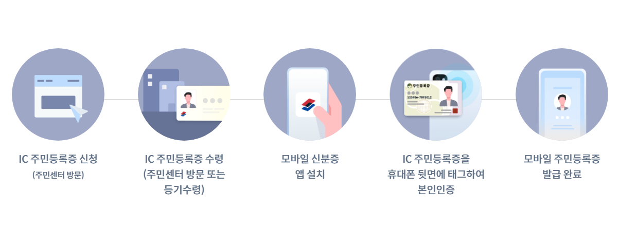 1. IC 주민등록증 신청 (주민센터 방문) : 먼저, 가까운 주민센터를 방문하여 IC(Integrated Circuit) 칩이 내장된 주민등록증을 신청해야 합니다. IC 주민등록증은 모바일 신분증 발급을 위한 필수 조건이니 꼭 발급받으세요.