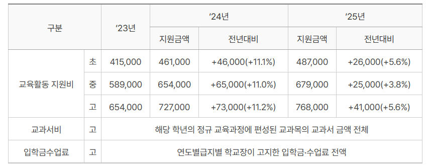 - 혜택: 학비, 급식비, 교재비 등 교육비 지원.